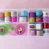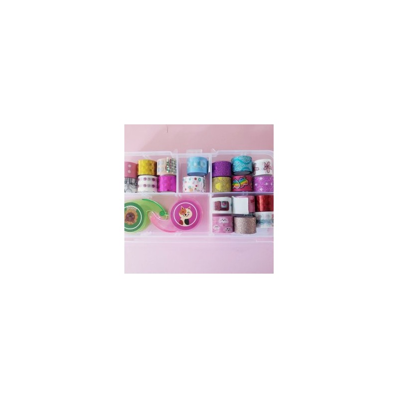 Incluye:,20 cintitas washis de colores al azar,1 estuche de plastico,2 mini despachadores de cita